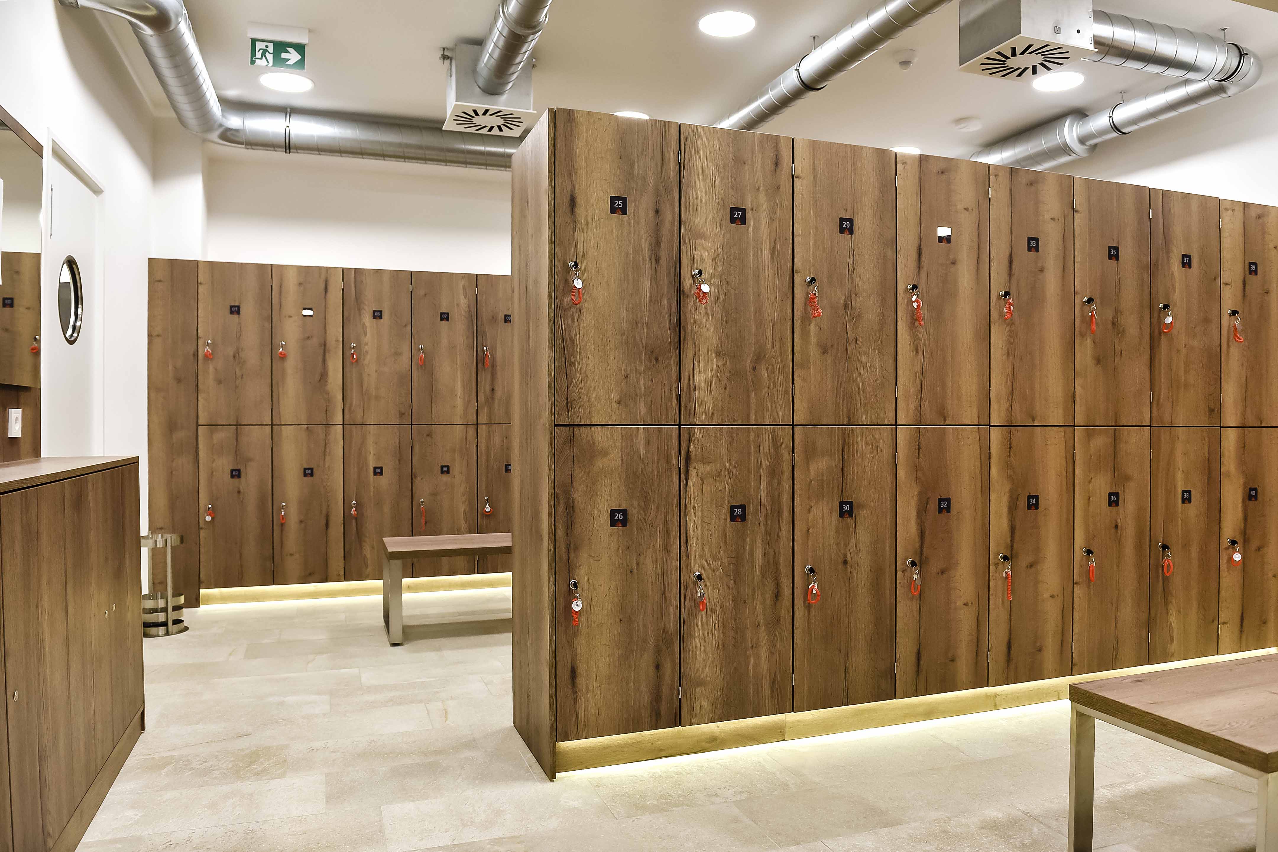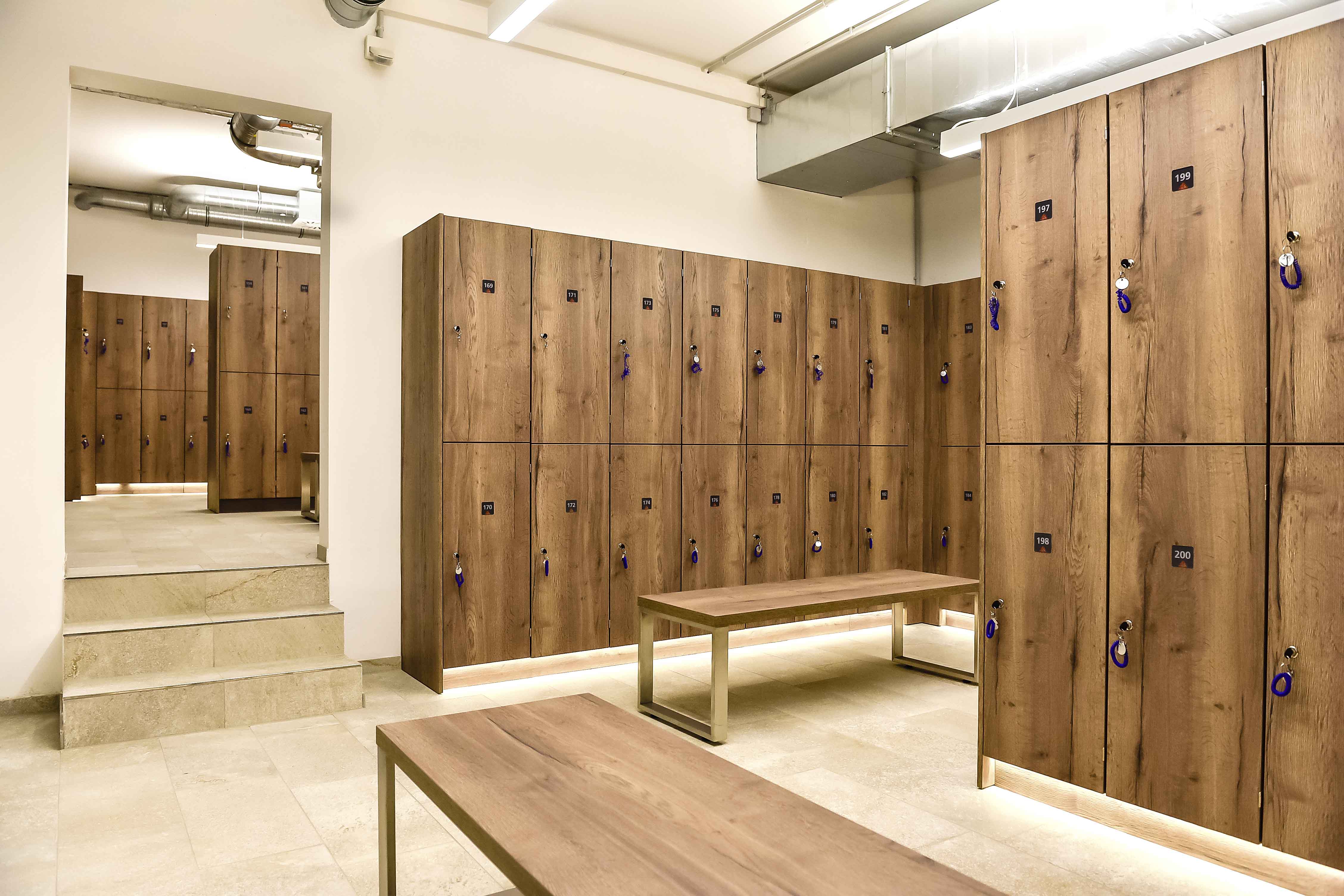 Es stehen Ihnen ausreichend Garderobenschränke zur Verfügung. Bitte schließen Sie alle Sachen, auch Schuhe in den Schrank ein und geben nach Beendigung den Schrank wieder frei.